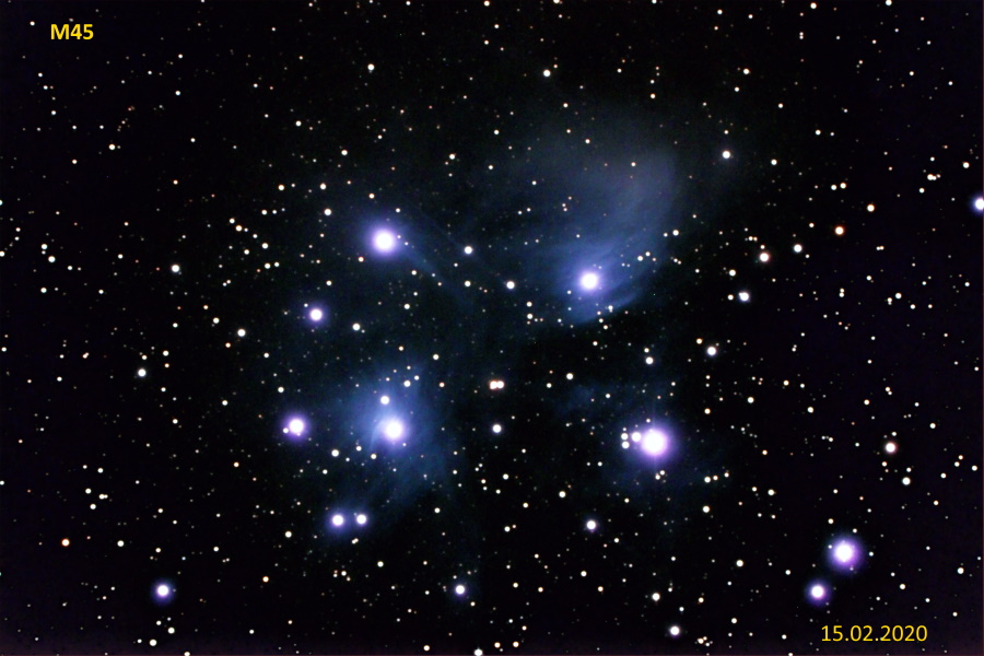 Die Plejaden sind wohl einer der bekanntesten offenen Sternhaufen. Sie werden auch das Siebengestirn genannt, obwohl wesentlich mehr Sterne zu dieser Konstellation gehören; bzw. mit bloßem Auge nur 5-6 Sterne zu zählen sind. In Japan wird dieser Sternhaufen Subaru genannt. Hier sehen Sie die Plejaden wie sie sich im visuellen und in einer Langzeit-Belichtung darstellen.