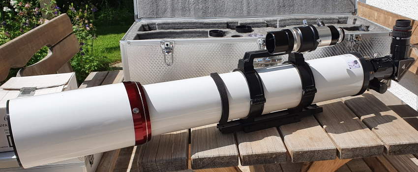 Das Linsenteleskop ist vor allem mit Brennweiten von 200mm bis 1200mm bei Amateurastronomen im Einsatz. Größere Brennweiten führen auch zu immer größeren Linsen, die dann entsprechende Kosten mit sich bringen. Diese "kleineren" Brennweiten sind vielfach bei mittleren bis großen Amateursternwarten (stationär) zusätzlich zu Spiegelteleskopen mit größeren Brennweiten montiert, so dass sowohl großflächige, wie auch kleine Objekte betrachtet / fotografiert werden können. | ![]() |