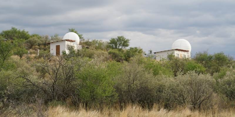 Unten sind die beiden Sternwarten in unmittelbarer Nähe der Lodge, jedoch genügend vom Licht des Lodge-Betriebs abgeschirmt. |