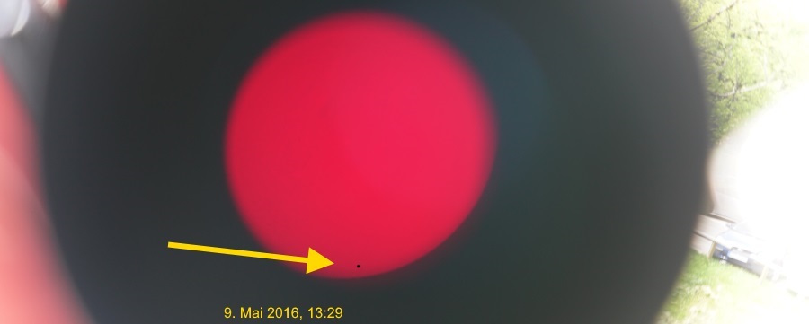 Mit diesem PST (Coronado Personal Solar Telescope) wurde dann der Merkur auch zuerst gesichtet als er sich am Rand der Sonne als kleines schwarzes Pünktchen bemerkbar machte.