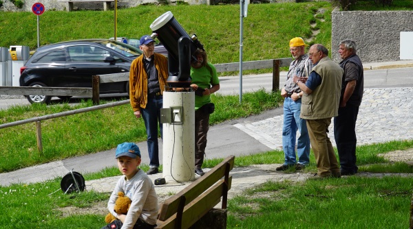 Dann wurden auch die umherstehenden Personen neugierig und haben sich getraut einmal durch das Okular zu schauen. Natürlich waren die Teleskope für die Sonne mit entsprechenden Filtern versehen, so dass keinerlei Schaden genommen werden konnte.